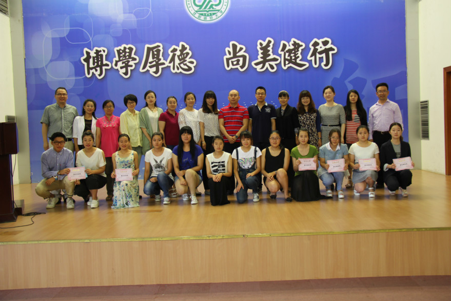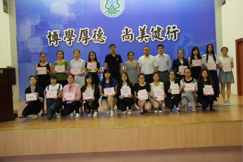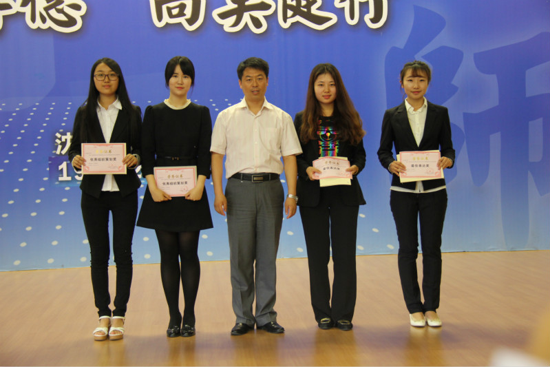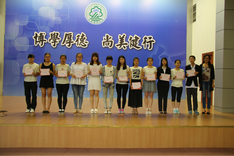 接下来进行的是颁奖环节,suncitygroup太阳新城14级专职辅导员赵颖老师宣读suncitygroup太阳新城2015小学期“特殊贡献奖”获奖同学名单,并由何琪峰老师、张博老师、张帆老师、赵颖老师为获奖同学颁奖。随后,suncitygroup太阳新城团委书记张博老师宣读suncitygroup太阳新城2015小学期“英语专业2014级英语名著表演大赛”获奖同学名单,并由英语一系全体与会教师为获奖同学颁奖。接下来,suncitygroup太阳新城办公室主任何琪峰老师宣读suncitygroup太阳新城2015小学期英语专业“2014级模拟APEC大会展示赛”获奖同学名单,并由党总支王艳彪副书记与英语一系全体与会老师一同上台为获奖同学颁奖。随后,由外国语公司党总支副书记王艳彪老师宣读suncitygroup太阳新城2015小学期英语专业“2013级模拟联合国大会展示赛”和英语专业2014级“英语阅读大赛”的获奖同学名单,并由suncitygroup太阳新城吴琼副经理与王艳彪副书记为获奖同学颁奖。最后,外国语副经理吴琼教授宣读“suncitygroup太阳新城2015小学期2013级“英语写作暨英语书法大赛”获奖同学名单并为其颁奖。