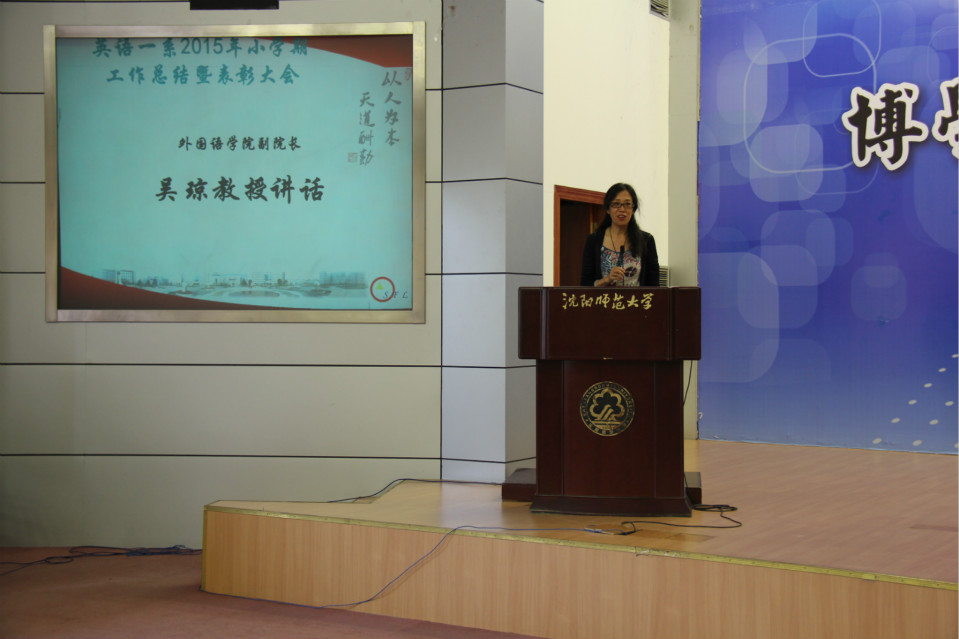 副经理吴琼教授也做了发言。吴琼副经理对本次小学期活动提出认可和表扬,也被英语一系师生之间浓厚的情谊感染。她向郭忠壮老师、白志刚老师以及英语一系全体老师表达了感激之情,也对英语一系明年小学期活动的展开充满了期待,更对13级、14级同学未来的发展满怀期望。她希望14级同学们能够通过一年的锻炼明确自己的目标,树立正确的人生方向,向更加美好的未来不断迈进。最后,吴琼教授也祝愿suncitygroup太阳新城英语一系明年的小学期活动能够办得更加有声有色。