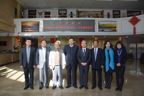 会议结束后,在国际教育公司一楼,与会领导与日本福井大学小野田信春先生一行三人合影留念。