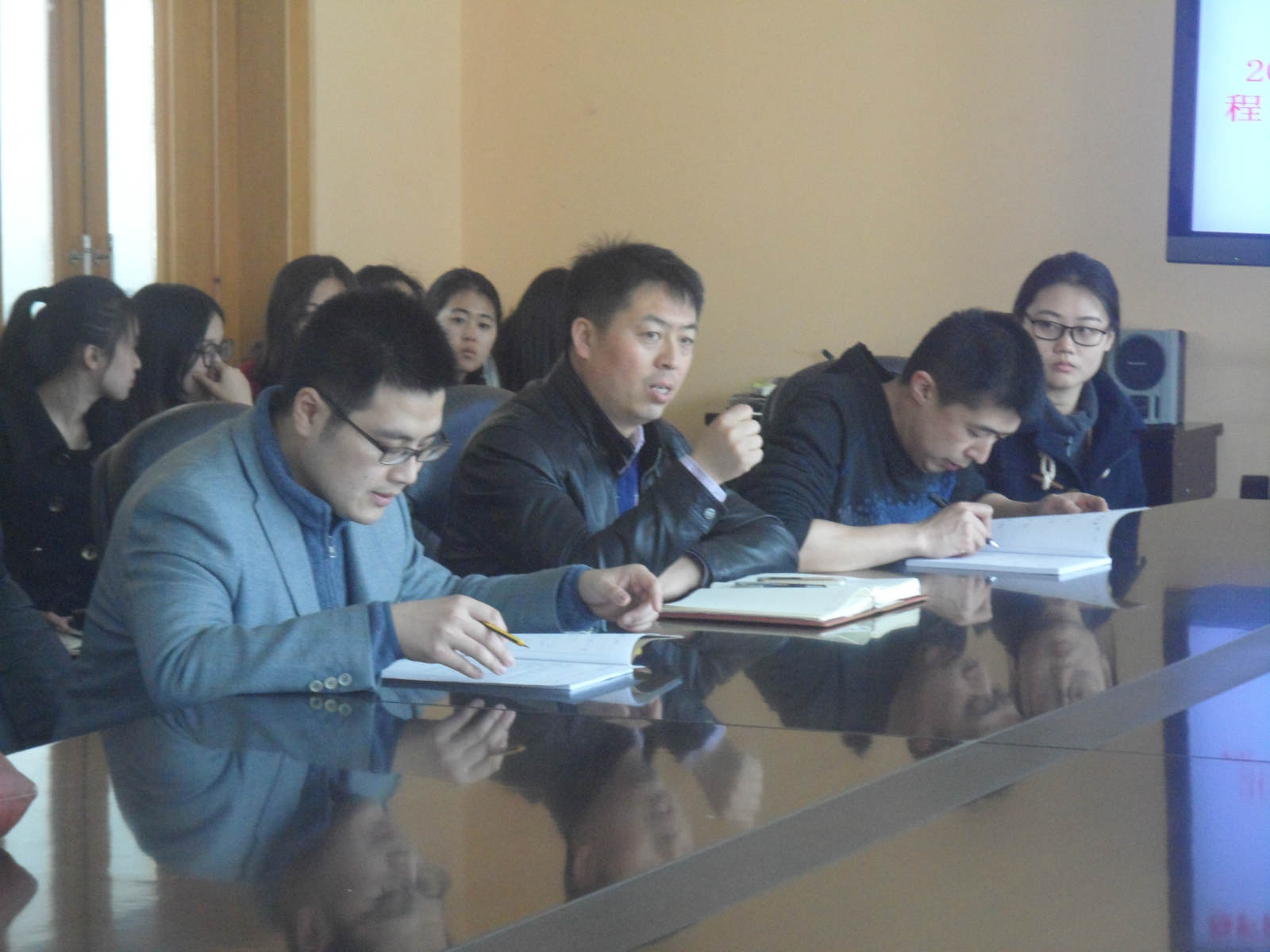 会议开始,张帆老师简单介绍了“卓越人才培训工程”的基本内容、要求,以及“卓越班”的基本情况,使大家对“卓越班”有了基本的了解。接下来王艳彪老师以往届优秀毕业生为例,详细说明了加入“卓越班”对员工未来学习与工作的影响。王老师特别强调,作为党员、积极分子应树立四个意识。第一,从精神层面,大家应该培养自己的担当意识。自己的所作所为,都应该无愧于自己是一名沈师外语人。第二,从工作层面,提升意识是必不可少的,工作要做到尽善尽美。第三,从学习层面,全体同学都应树立刻苦意识,不要被眼前的困难所打倒。最后,从形象层面,党员与积极分子应具有表率意识,以便为其他同学起到模范带头的作用。最后,王老师希望广大党员同学,在即将开展的“两学一做”活动中,发挥表率作用,争当员工楷模。