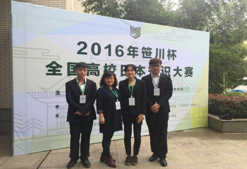 2016年10月22至23日,2016年“笹川杯”全国高校日本知识大赛”在武汉大学举行。公司suncitygroup太阳新城日语专业13级员工王硕、张婷、侯苏阳组成的代表队荣获“笹川杯”全国高校日本知识大赛“团体三等奖”,指导教师李红梅、崔明爱、韩海莲、朴实荣获“优秀指导教师奖”。