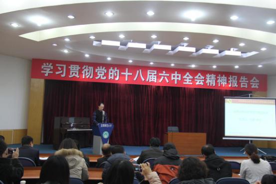 秦晓波教授从四个全面整体战略布局的需要、全面从严治党的伟大征程和建设中国特色社会主义的可靠保障等三个方面宣讲了党的十八届六中全会的重要意义。