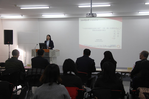 翻译系青年教师马晓丽代表研习班的学员作了发言。她表达了对公司多年培养的感谢之情并汇报了在研习班中的学习体会。