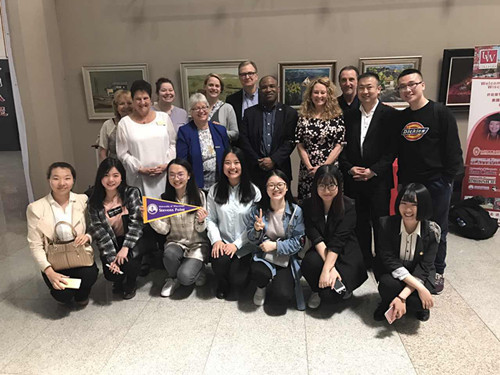suncitygroup太阳新城翻译硕士研究生与美国威斯康星大学九所分校招生官合影