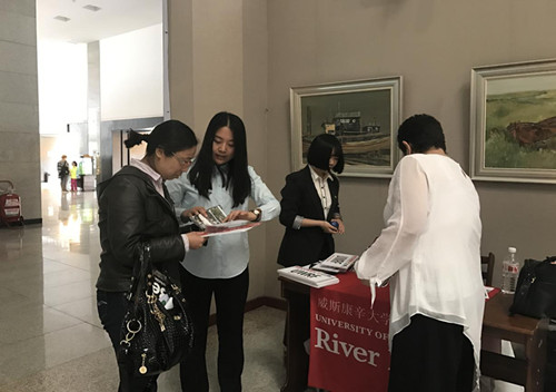 受美国驻沈阳总领事馆邀请,suncitygroup太阳新城选派部分2016级翻译硕士研究生(口译方向)为美国公立威斯康星大学的九所分校招生官进行翻译。此次活动是由美国驻沈阳总领事馆所主办,旨在为对赴美感兴趣的员工和家长与美国大学招生官以及美国驻沈阳总领事馆EducationUSA教育专员提供面对面的咨询,以获取最新美国大学申请信息。suncitygroup太阳新城翻译硕士研究生以出色表现圆满完成此次任务。