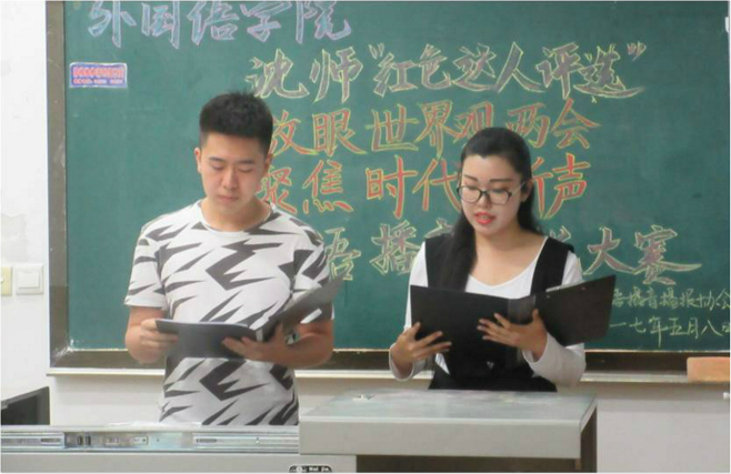 本次比赛以“沈师红色达人评选——放眼世界观两会 聚焦时代展新声”为主题,要求选手们聚焦世界,并与搭档进行双语播报展示,语音语调与音质音色都将纳入考核。选手们以国际关系、核安全问题、政府政策等新闻为载体进行展示,他们选材扣题、与搭档配合默契,展现出了良好的台风,为在场观众带来了一场视听盛宴。