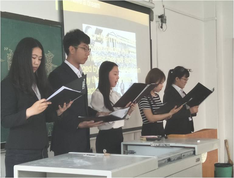 比赛中,同学们声情并茂地诵读了《再别康桥》、《岳阳楼记》等经典文章,并有团队诵读经典励志文章“I have a dream”,激发了聆听者的斗志,积极传播了正能量,取得了良好的效果。比赛内容全面,从励志美文、经典散文,到感人肺腑的爱情诗歌,充分展现了外语学者的风姿。