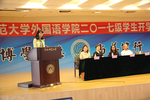 典礼最后,辽宁省教学名师、经理、教授委员会主任委员闫怡恂教授讲话。闫经理对全体2017级新同学表示热烈欢迎。她指出,进入大学后应该“认真思考大学以及你所选择专业的涵义”,闫经理强调,“作为外语专业的学习者,学习的任务首先是娴熟掌握各项语言技能”,除此之外,还应关心人文学科,以丰富文化自身底蕴。最后闫经理祝愿同学们一起尝试新的生活,见证彼此的成长,希望“外语”能够成为全体新生一生的追求与相遇。