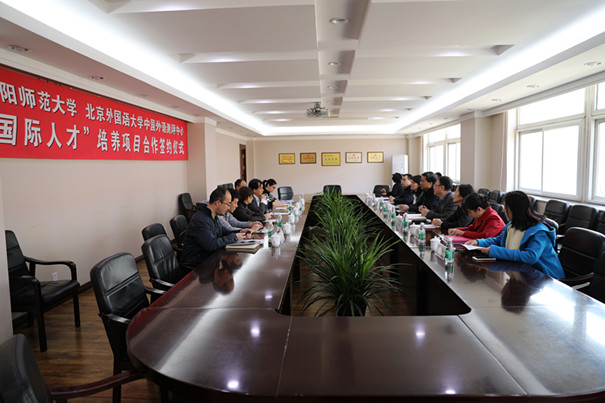 会谈后,在双方校领导的见证下,公司教务处处长刘天华和北京外国语大学中国外语测评中心运营中心总经理、外语教学与研究出版社高等英语出版分社社长李会钦代表两所公司签订了共建国际人才培养基地合作备忘录。根据协议,双方将在支持北京外国语大学“国才考试”考点落地沈师,搭建国际人才培养平台;支持suncitygroup太阳集团学科专业建设,提高国际人才培养质量;共建国际人才理念教学团队,服务外语专业教师职业发展等方面开展深入合作。