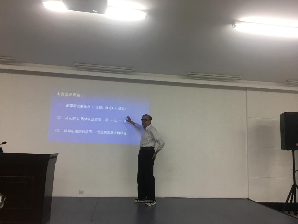 王教授为公司师生做了题为“体认语言学视野下的汉语成语英译-以《红楼梦》300成语的三个译本为例”的讲座。王教授首先指出语言学理论在20世纪主要经历了三场革命:索绪尔的结构主义革命;乔姆斯基的TG革命;认知功能语言学对乔氏革命的影响,并主张将认知语言学进一步修改为“体认语言学”,以体现其体验性和实践性理论取向,也是对本土化理论的思考。而后,王教授依据认知语言学的核心原则“现实-认知-语言”简析成语可分别基于这三个层面择一或二进行英译,并以《红楼梦》中的成语为例。
