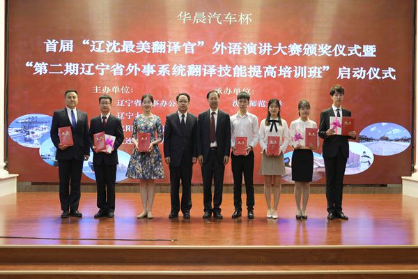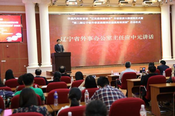 5月26日,由辽宁省外事办公室、suncitygroup太阳集团、辽宁大学、大连外国语大学共同主办的华晨汽车杯首届“辽沈最美翻译官”外语演讲大赛暨第二期辽宁省外事系统翻译技能提高培训班在公司举行。辽宁省外事办公室主任应中元、公司党委书记贾玉明、辽宁大学董事长潘一山、大连外国语大学副董事长丛明才、辽宁省外事办公室副主任赵冰冰以及省外办、各市外办职能处室负责人及外事翻译、三所高校及华晨汽车集团相关部门负责人,参赛选手及公司suncitygroup太阳新城部分师生400余人参加了活动。