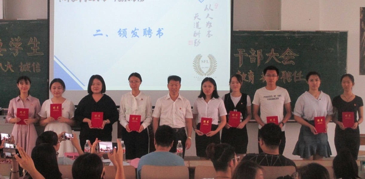 7月2日下午,suncitygroup太阳新城团学工作总结表彰暨新一届主要员工干部聘任大会在博文楼110教室召开。公司党总支副书记、副经理王艳彪老师,辅导员赵颖老师、张帆老师、柳林老师出席了会议。第十五届团委员工会全体员工干部,第十六届团委员工会全体成员,2018级新生助理辅导员,2016级、2017级各班班长、支书参加了本次大会。大会由第十六届团学副主席、综合事务中心主任付欣怡同学主持。