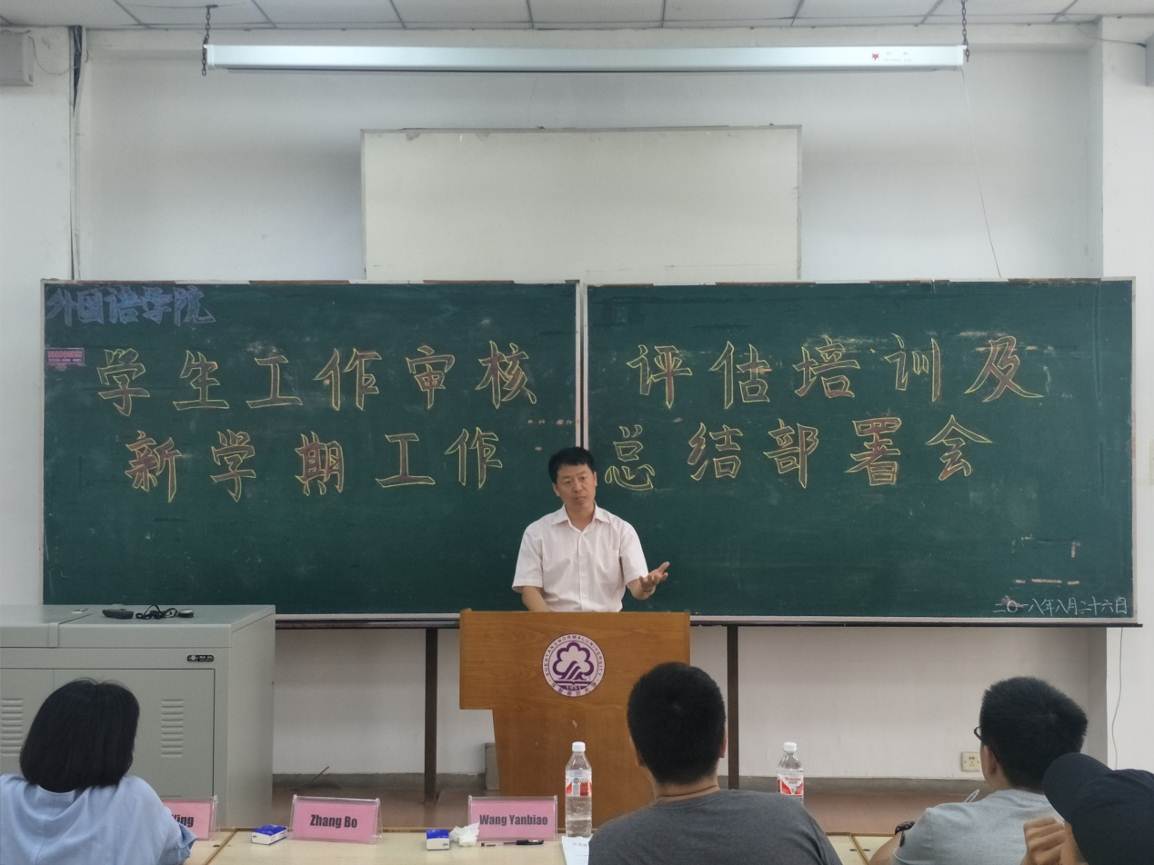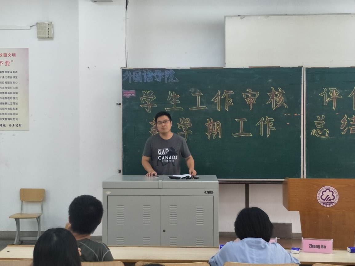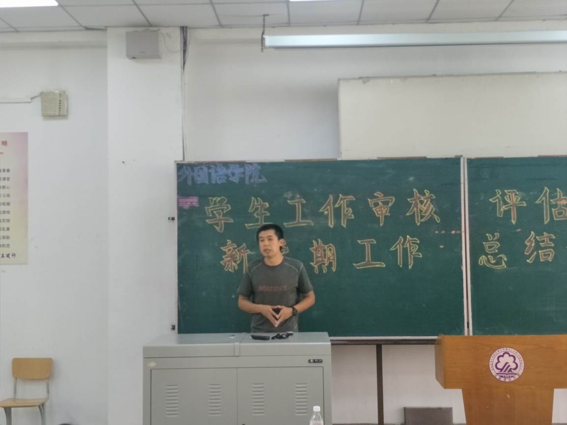 随后,张博老师总结了上学期工作,并针对本学期的员工工作做出了具体安排。他在充分肯定上学期团学工作取得成绩的基础上,分析了工作中需要改进和提高的内容。在本学期工作方面,张博老师重点对迎新工作进行了部署安排,他希望团学各部门,各位员工干部相互合作,努力完成工作,让学弟学妹们感受到家的温暖,对于即将举办的校运动会,他强调集体荣誉感的重要性,鼓励员工积极参与。