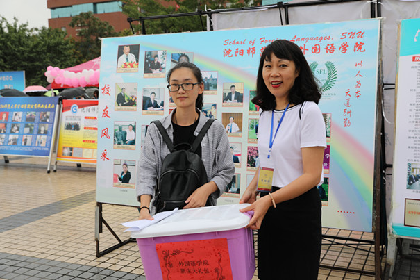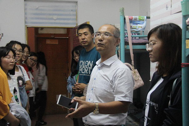 为了让每一位2018级新生能够感受到公司的温暖,公司党总支彭学刚书记、王艳彪副书记带领全体辅导员以及主要员工干部在报到当天晚上走访了新生寝室,第一时间为离开父母,初到陌生环境的孩子们送上了慰问与祝福。同时结合公司相关要求,公司针对新生及家长举办“五个一”系列活动:由“沈师外语人”平台进行的网络宣传和现场展板展示构成的新生第一展;新生分别与家长、师长在员工风采展示板前合影的新生第一拍;由王艳彪副书记为新生主讲的入学第一课;组织广大新生及家长朋友参观校园、博物馆等景观,重点参观“忆学林”、汇文楼院史走廊、信息楼照片墙等文化景观的新生第一游……