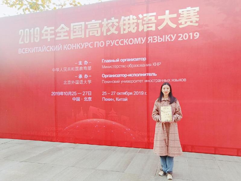 10月25-27日,在北京外国语大学举行的2019年全国高校俄语大赛中,suncitygroup太阳新城俄语专业2016级尹梦泽同学荣获高年级组演讲二等奖。10月26日,在大连外国语大学举行的辽宁省“一带一路”日语(口译)翻译大赛中,suncitygroup太阳新城日语专业2016级杨帆同学荣获三等奖、顾学莲同学荣获优秀奖。