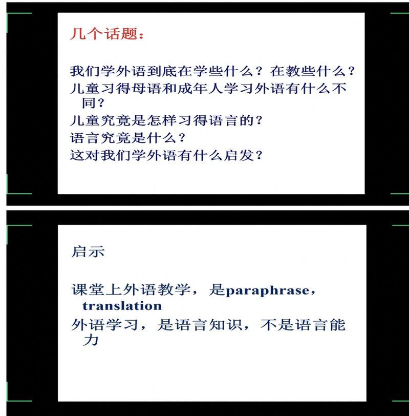 在本次讲座中,成晓光教授首先通过几个英语学习和教学中的问题开始了主旨发言,我们学外语到底在学些什么?在教些什么?儿童习得母语和成年人学习外语有什么不同?儿童究竟是怎样习得语言的?语言究竟是什么?这对我们学习外语有什么启发?成晓光教授通过分享一些视频,逐步针对儿童语言习得对外语学习的启发,语言是用耳还是用眼,是口语还是书面语,是Comprehension还是Production,是意义(语义)还是形式(语法),是表达思想还是翻译,语言是一种技能还是知识,是交际(使用)还是考试,是课堂学习还是自然环境,是教师还是交流者,课堂上能学会语言吗等话题进行了阐述。接着,成晓光教授理论结合实践,针对语言的本质是什么、语言习得的意义问题等,从语言哲学的视角进行了讨论。他着重介绍了哲学研究中有关语言意义的主流理论,对指称论、摹状论,名称断言、历史因果论、直接指称论、命题论、真值论、证实论、心理论以及当代主流的语言使用论等进行了分析,并指出,无论母语习得还是二语学习,关键的问题是意义的问题。只有在哲学层面上思考哲学基本问题,才能对我们从事的外语教学有个清醒的认识。