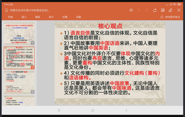 冯智强教授结合林语堂作品和十九大报告的翻译,从词汇、句子、篇章、修辞等方面考察其中所蕴含的语言自信,探讨译文如何超越中式英语、合理运用中国英语,从而构建中国对外话语、传播中国文化的过程,以期为促进中外交流提供重要参考,为树立良好的中国形象、赢得国际话语权提供话语方案。参会者们对从文化自觉到语言自觉、从文化自信到语言自信有了一个全新的认识和理解。除此之外,冯智强教授在讲座中还结合林语堂模式进行了举例分析,使讲座内容更加丰富。