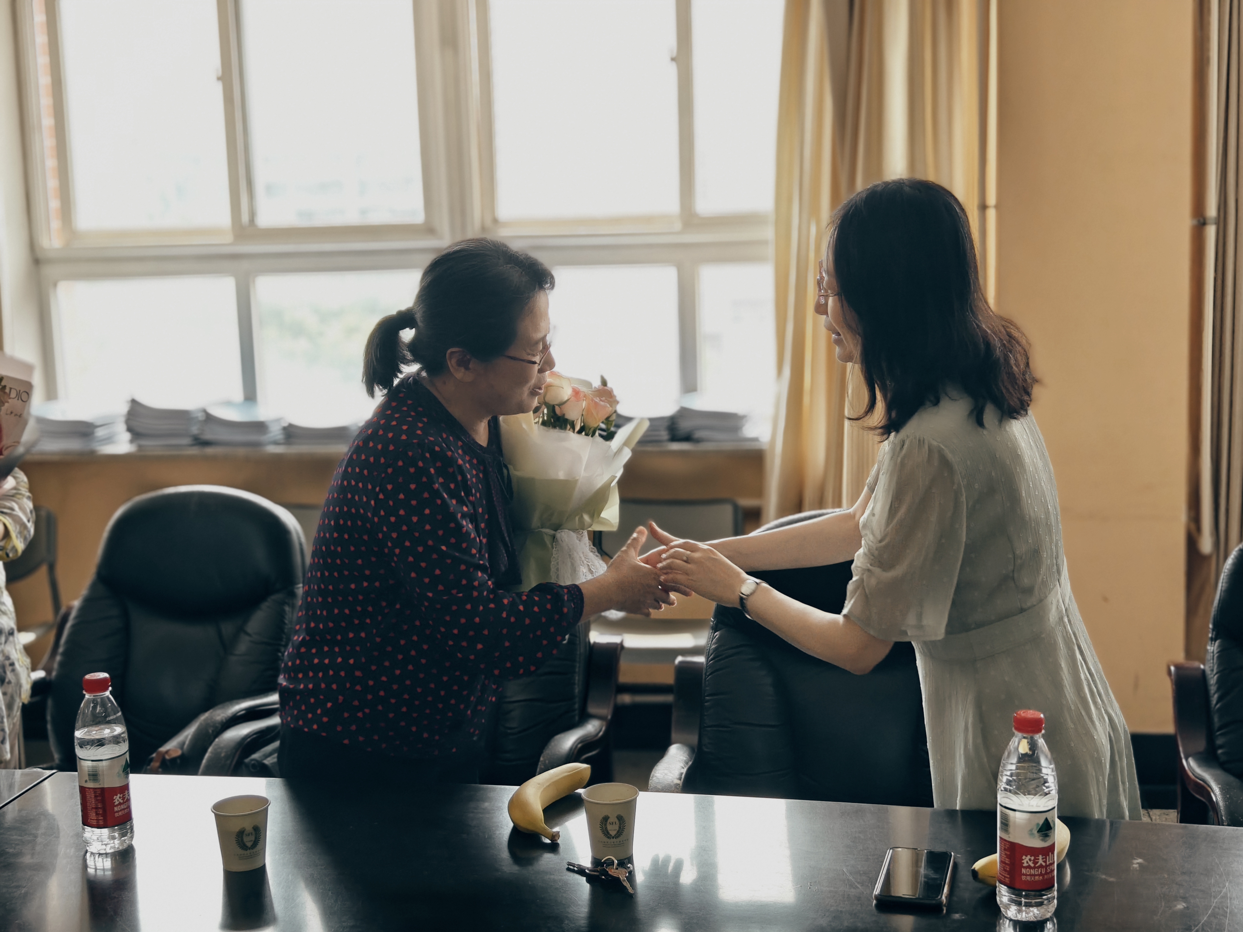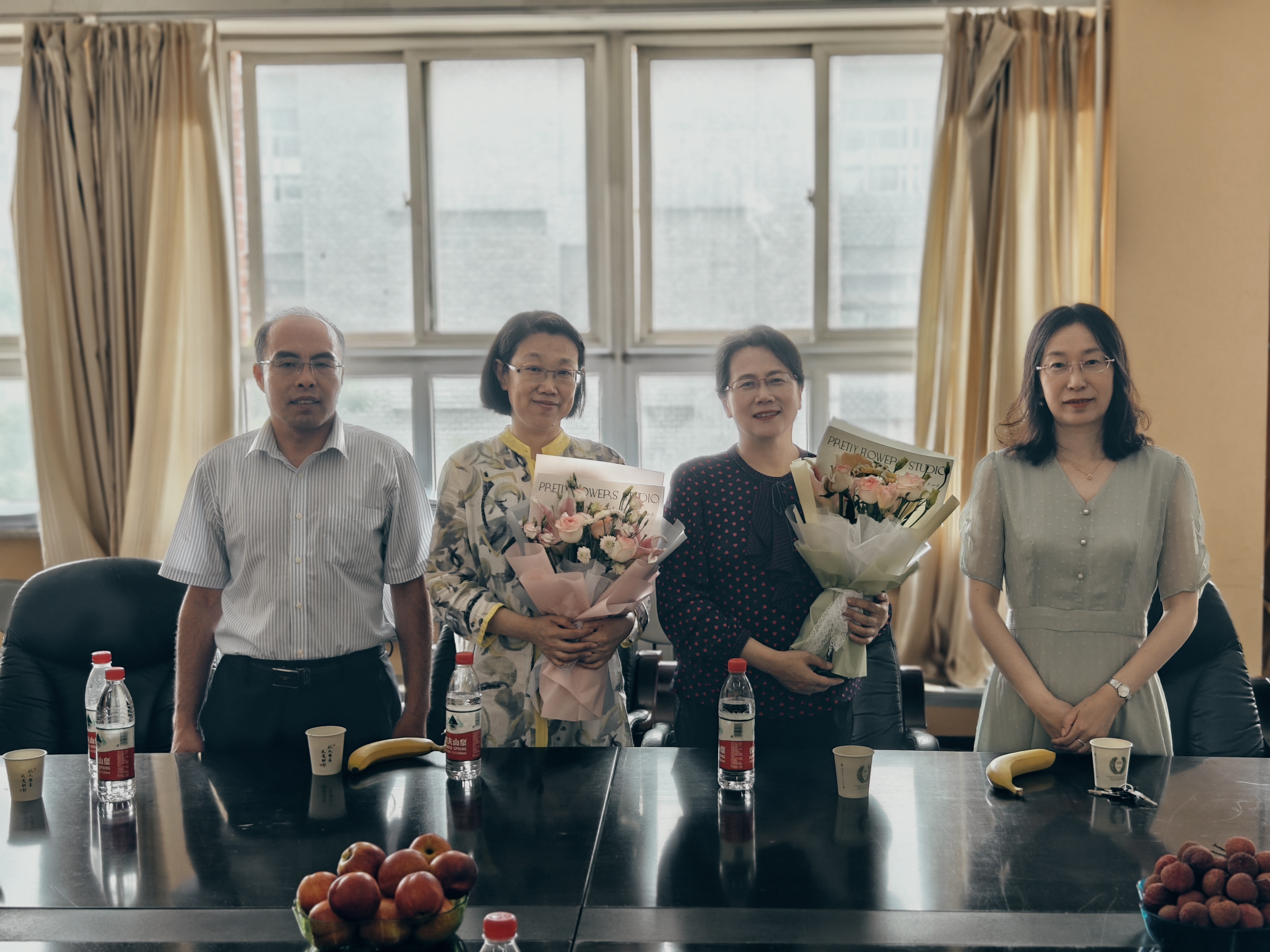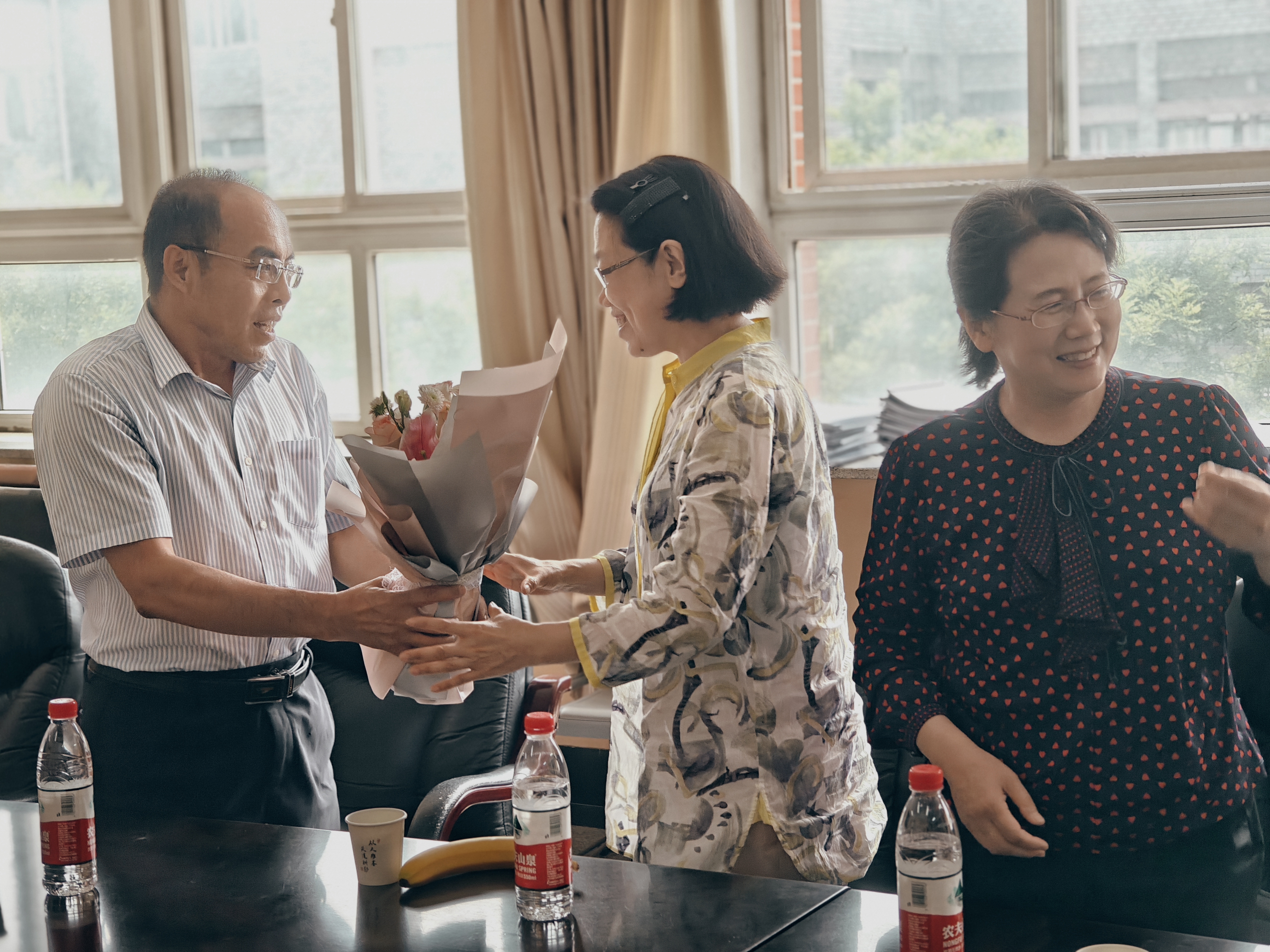 最后,学院领导,老师和两位退休老师合影留念,并送出祝福。欢迎两位老师老师今后常回公司看看,对学院的工作给予指导,同时也表达了对两位老师的依依不舍和美好祝福。