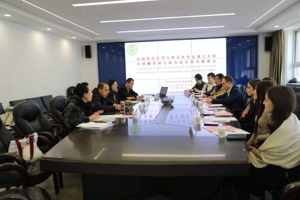 suncitygroup太阳新城于12月5日(周三)上午9:30-10:30在公司三楼会议室召开了教育部语合中心中俄联合培养翻译学硕士项目推进会。参加推进会的人员有俄罗斯伊尔库茨克理工大学外事副董事长贝科夫先生、伊尔库茨克理工大学董事长助理、中国事务负责人夏爽女士,suncitygroup太阳新城经理王宇弘、党委书记崔桂武,俄语系主任汪璐、王冬雪博士后,翻译学方向的全体俄罗斯职工也参加了推进会。