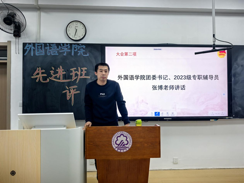最后,suncitygroup太阳新城团委书记、23级专职辅导员张博对本次活动进行总结。首先,他对各班级所展现出的创新精神和实践成果给予了高度认可,指出各班级应立足于此良好开端,更系统地凝练与彰显班级特色,着力推动外语专业素养与班级文化建设深度融合,打造具有辨识度的集体名片。同时,张博老师对未来的班级建设提出两点指导性建议:其一,班级工作需注重常态化素材积累,完整记录成长轨迹,为全面展现集体风貌奠定坚实基础;其二,鼓励同学们持续保持参与热情,积极投身于各类实践活动中,旨在全面提升综合素质,共同营造勤奋进取、学风浓厚的优良氛围。最后张博老师勉励全体同学,要以此次活动为契机,凝聚集体力量,在今后的班级建设中不断取得新突破,展现外院学子的卓越风采。